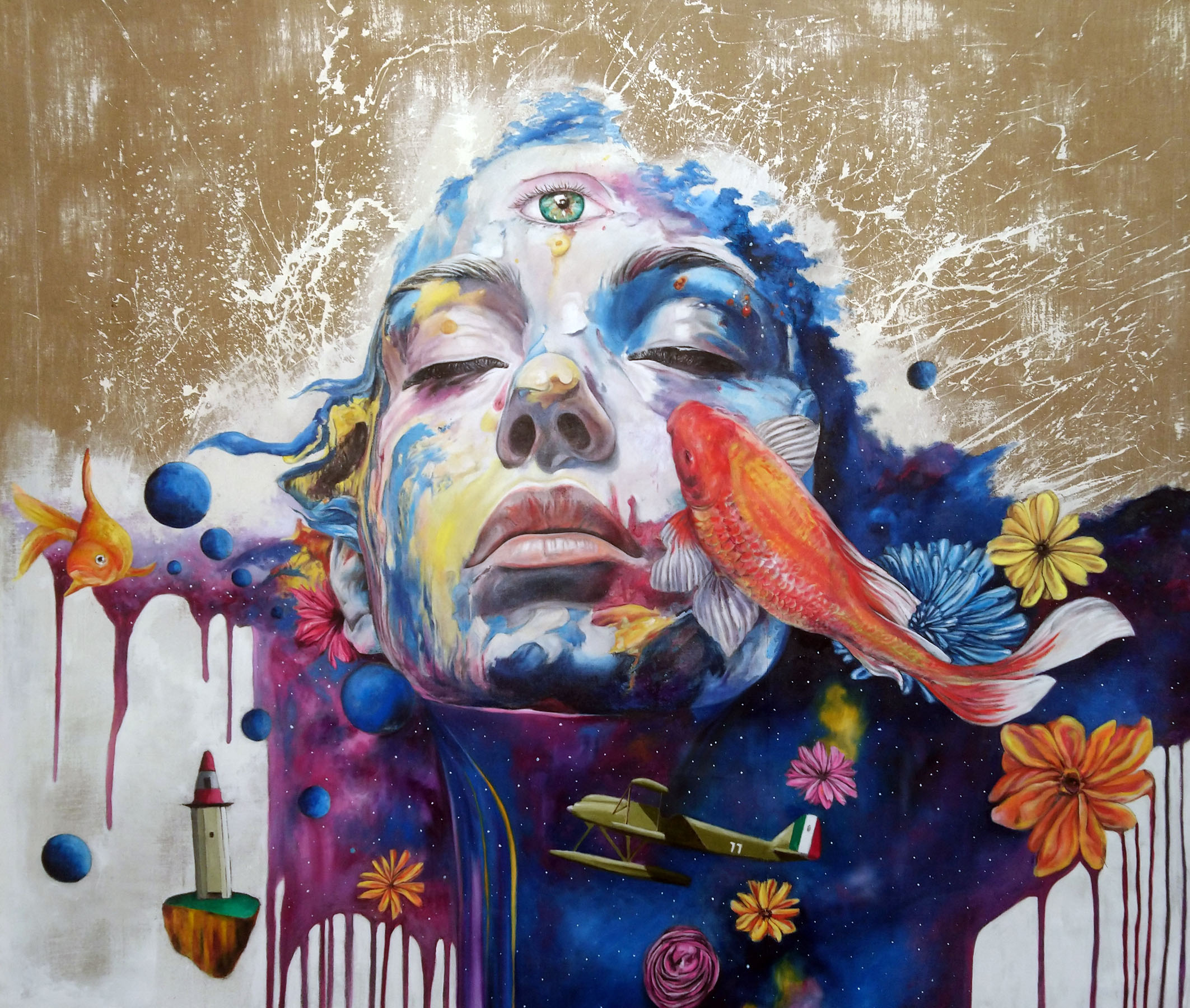 Pesci rossi e carpe si ritrovano a nuotare dentro gli occhi di giovani fanciulle figlie del profumo di fiori inebrianti. Si dice si tratti di fiori alieni piantati da extraterrestri milioni di anni prima, sull’arido suolo terrestre, si dice che torneranno a vederne la fioritura.